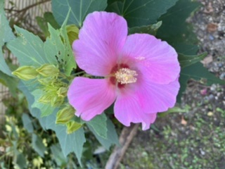 夏の終わりから秋にかけて咲く花「フヨウ」が玄関の前で咲いています。植えたのではなくて、どこからか風に乗って飛んできたのか、鳥が運んできたのか、縁起の良い花と言われるので嬉しいです。