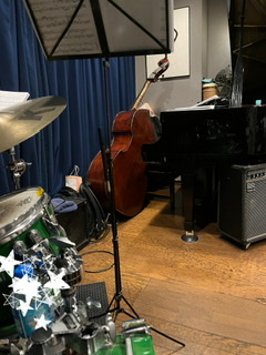私の左横がドラム、バスドラが鳴るたび、