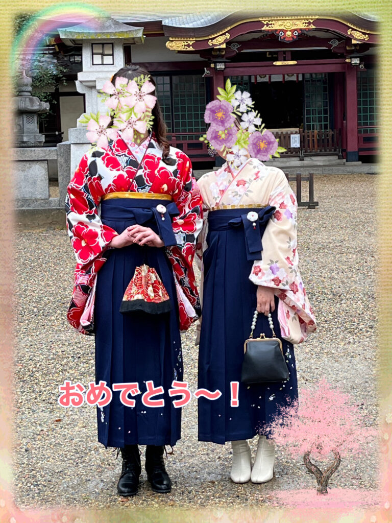 お友達と二人で晴れ姿を見せに来てくれました。