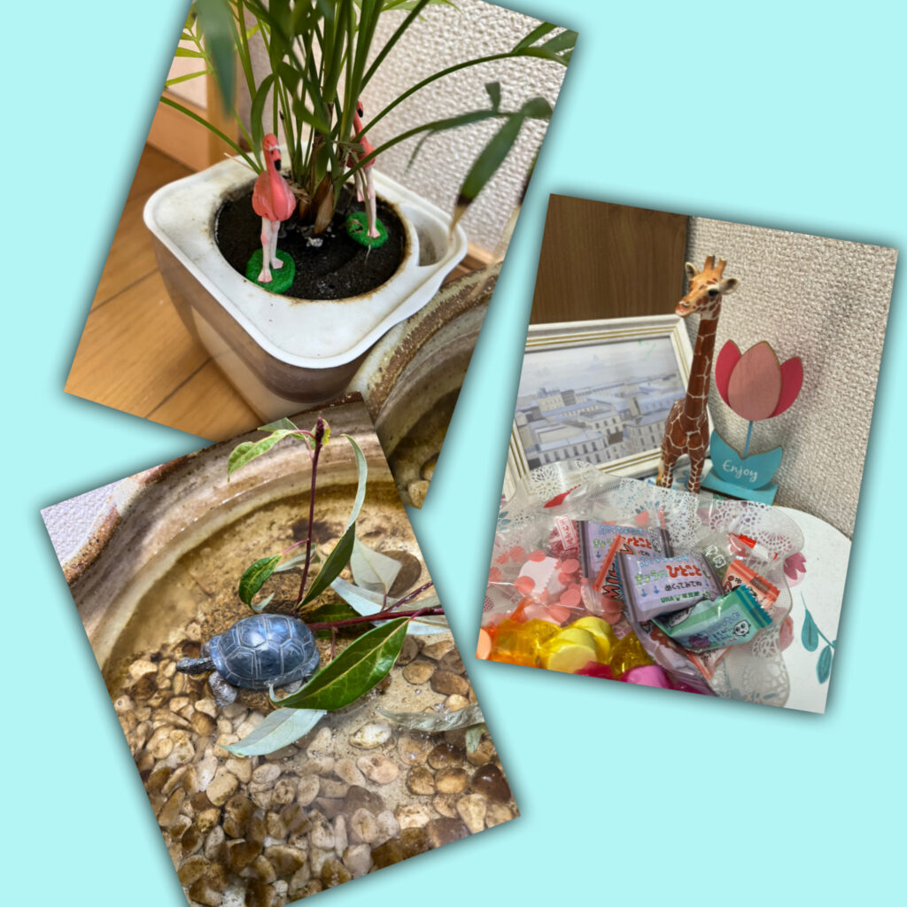 22 2月 2025 furutamusic 日記 それぞれの場所に 昨日のフィギュア達、 それぞれの場所に。 カメさんはメダカのお家に、 フラミンゴは植木鉢のお庭に、 キリンさんはアメちゃん担当、 さっそく皆の人気者です。
