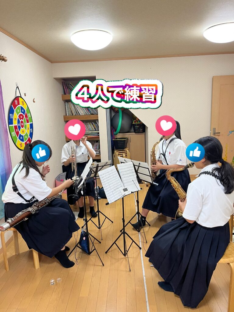 4人で楽器持って集まりました。