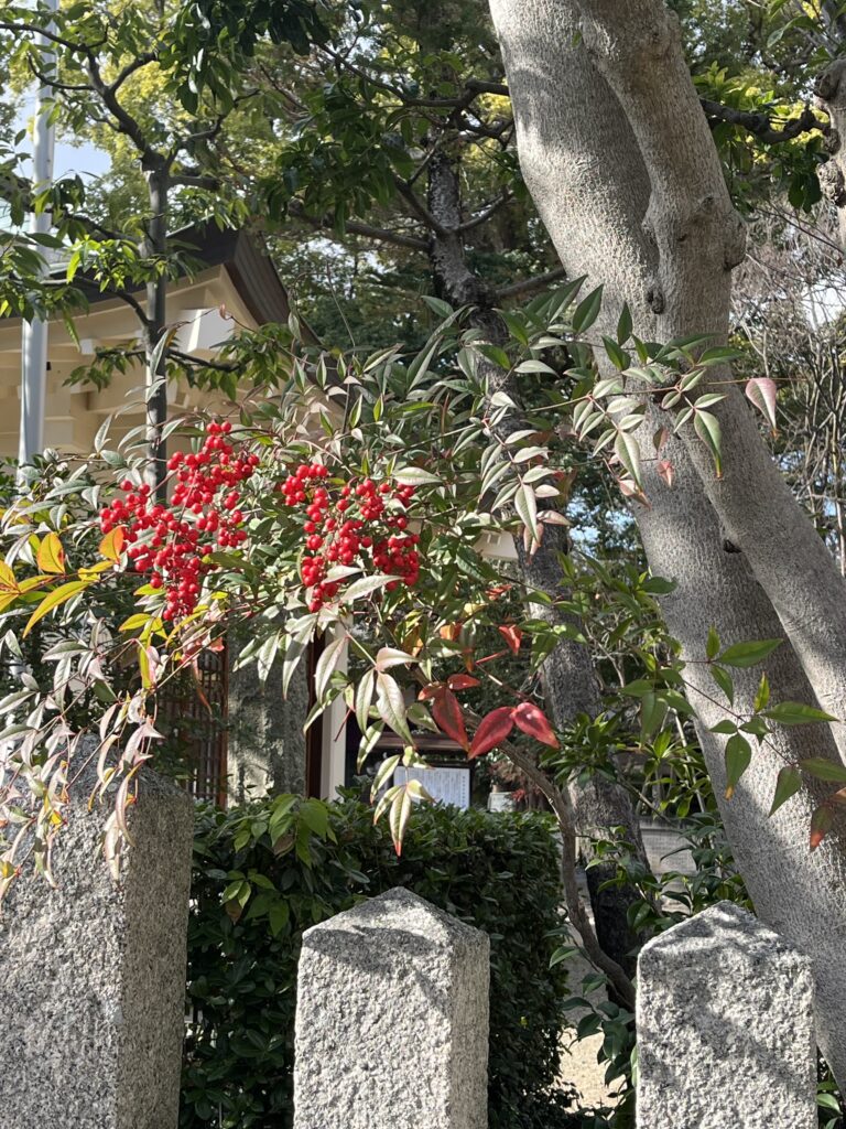 南天の赤色がきれいです。